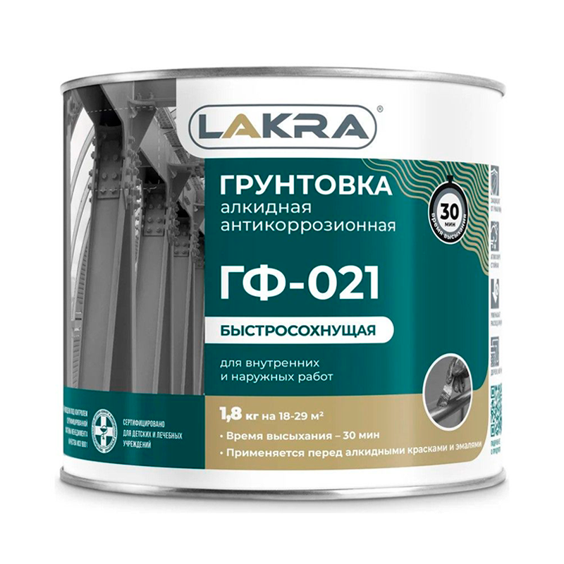Грунтовка быстросохнущая ЛАКРА – высококачественная грунтовка на основе алкидного лака. Предназначена для грунтования металлических, деревянных и других поверхностей перед покрытием их эмалями внутри и снаружи помещений. Обладает высокими антикоррозийными свойствами и быстрым временем высыхания. Готова к применению.
