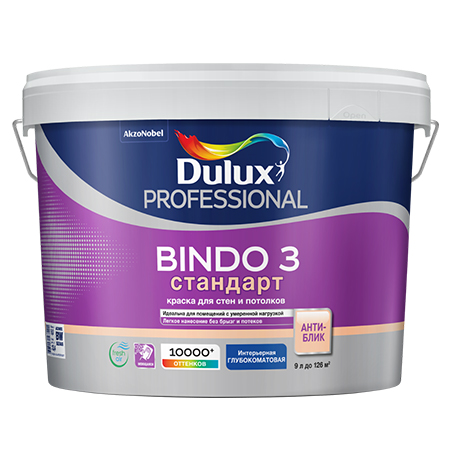 Краска Dulux Professional Bindo 3 водно-дисперсионная глубокоматовая база BW ( 9л)