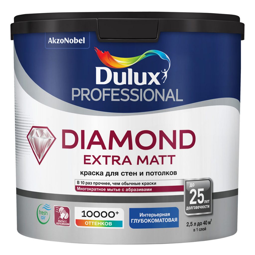 Глубокоматовая водно-дисперсионная краска повышенной износостойкости для высококачественной отделки стен и потолков, максимально укрывистая, с нейтральным запахом. Создает безупречное покрытие без бликов, визуально маскирует несовершенства поверхности. В основе «Алмазной прочности» — точно подобранный баланс минеральных наполнителей и эластичного связующего, который формирует долговечное и суперстойкое покрытие. Краска легко наносится, не образует потеков.