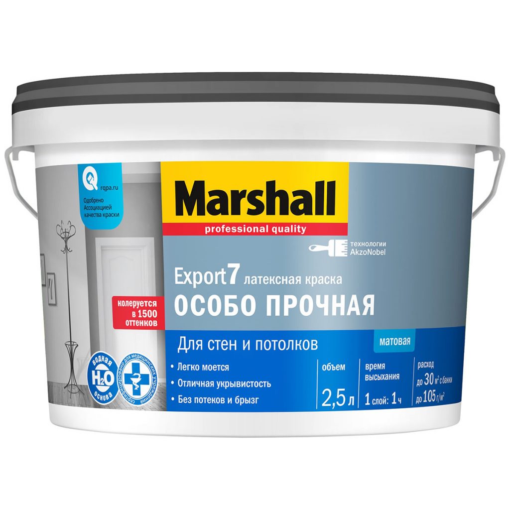 Краска Marshall Export-7 водно-дисперсионная для стен и потолков матовая база BC ( 2,5л)