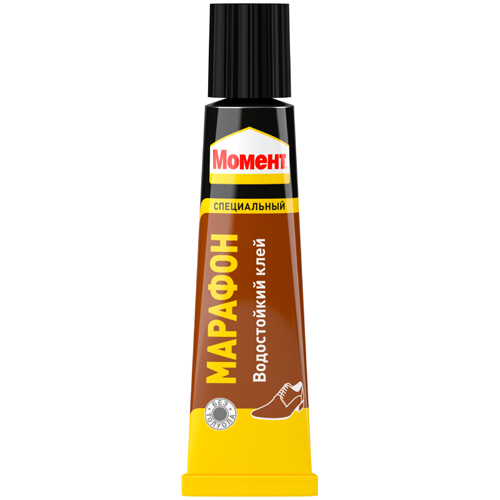 Момент Марафон - Специальный клей предназначенный для ремонта обуви. Области применения Склеивает в различном сочетании обувь и обувные материалы, из таких материалов как:Кожа, Кожзаменитель, Резина, Войлок,Ткань,и другие аналогичные материалы. Сроки храниения 24 мес. Цвет Желтый. Основа На основе полихлорпропилена. Не содержит Толуол. Вес, объем 30мл.