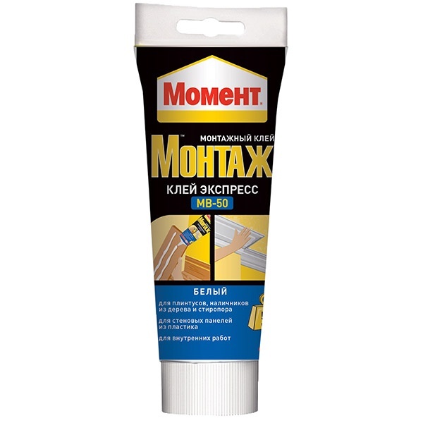 Монтажный клей Момент Монтаж предназначен для приклеивания плинтусов и декоративных фризов, изоляционных панелей, профилей, плитки, настенных табличек, подоконников, дверных наличников и т. д. Открытое время (для позиционирования склеиваемых деталей) - 15 минут.