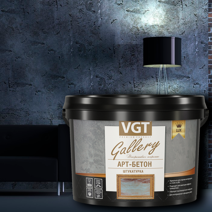 Образует на поверхности характерную заглаженную фактуру с вкраплениями окатанной фракции (0,2-0,5 мм) доломита тёмного цвета, что даёт возможность имитировать различные текстуры бетона или камня. Разнообразие способов нанесения позволяет применять материал в отделке различных стилей: loft, high-tech, Арт-деко и др. Обладает высокими эксплуатационными характеристиками, поэтому материал можно применять как для интерьеров, так и для фасадной отделки.
